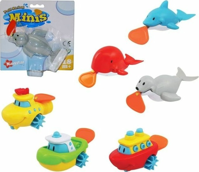 6 provedení – 3 druhy zvířátek, a 3 dopravní prostředky. Při natažení plave.