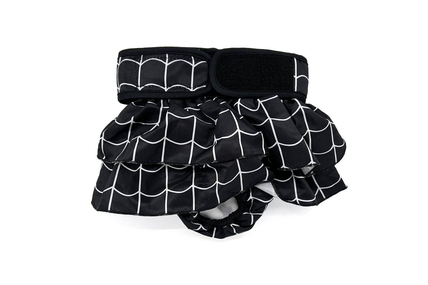 Luna hárací kalhotky pro psy jsou účinným řešením pro hárání. Tyto kalhotky, vhodné pro všechny velikosti psů, poskytují spolehlivou ochranu a udržují čistotu domova. Díky kvalitnímu materiálu jsou odolné a snadno udržovatelné, což zajistí pohodlí pro vašeho psa a usnadní péči o kalhotky. Proč si je zamilujete? Kvalitní materiál: Vyrobené z odolného polyesteru, snadno se perou a dlouho vydrží. Perfektně padnou: Díky suchému zipu a gumičce v pase budou kalhotky vašemu psíkovi perfektně sedět, aniž by mu nějak vadily. Snadná údržba: Stačí je hodit do pračky na 30 °C a máte hotovo! Nepropustná vložka: Kalhotky obsahují kvalitní nepropustnou vložku, která zajišťuje extra ochranu a všechny nečistoty udržuje v kalhotkách. Prodloužený suchý zip: Hárací kalhotky mají prodloužený suchý zip, který umožňuje lepší a pevnější utáhnutí. Tento prvek zajišťuje, že kalhotky krásně sedí i hubenějším pejskům. Šaty nebo kalhotky: Kalhotky jsou vybaveny roztomilými volánky, které jim dodávají vzhled šatů. Tyto volánky přinášejí stylový a roztomilý vzhled bez vlivu na jejich skvělou funkčnosti. Náš speciální tip: Vložte do kalhotek obyčejné hygienické vložky z drogerie. Je to snadné, hygienické a zvýšíte tím absorbci. Udržíte tak svůj domov čistý a vaše nervy v klidu. Jak hárací kalhotky oblékat Rozepnutí: Nejdříve kalhotky rozepněte na jedné straně. Nasazení: Vložte jednu nohu psa do otvoru a potom protáhněte ocásek. Zapínání: Otočte kalhotky kolem boků psa a zapněte je na druhé straně, buď ve slabinách nebo v pase. Je to snadné! Hárací kalhotky stačí rozepnout, provléknout nohu, ocásek a pak je znovu zapnout v pase. Po použití je můžete jednoduše vyprat v pračce. Rada na závěr: Správná velikost: Ujistěte se, že kalhotky vaší fence správně sedí, nejsou příliš těsné ani volné. Doporučujeme změřit obvod slabin v místě před zadníma nohama. Pravidelná kontrola: Pravidelně kontrolujte, zda kalhotky nezpůsobují pejskovi nepohodlí nebo podráždění. Vyhnete se tak tomu, že si bude chtít pejsek kalhotky sundat. Omezení doby nošení: Nedoporučuje se nechat psa v kalhotkách nepřetržitě. Poskytněte mu pravidelné přestávky a využijte je například jako příležitost k venčení. Kalhotky nejsou antikoncepce: Slouží pouze ke zvýšení hygieny a ochraně domova během hárání. Jak používat kalhotky co nejefektivněji? Pro co nejlepší využití háracích kalhotek doporučujeme koupit dva páry kalhotek. Tímto způsobem můžete jeden pár vyprat, zatímco váš pes nosí ten druhý. Tento způsob použití zajistí nepřetržitou ochranu a současně udržuje váš domov v čistotě. Pravidelné praní a střídání kalhotek zabezpečí dodržování hygieny, které můžete ještě zvýšit použitím hygienických vložek. Velikost Obvod slabin XS 18 - 34 cm 11 cm S 22 - 44 cm 15 cm M 26 - 48 cm 16 cm L 32 - 54 cm 19 cm XL 42 - 66 cm 21 cm