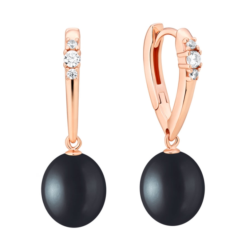 Elegantní visací náušnice s černými perlami představují dokonalou rovnováhu mezi noblesou a moderním půvabem. Lesklé stříbro pozlacené 14k růžovým zlatem vytváří hřejivý kontrast k temnému odstínu perly, která působí tajemně a přitom sofistikovaně. Každý detail je promyšlen tak, aby šperk působil harmonicky, jemně a s puncem luxusu.Tři drobné čiré zirkony v horní části náušnice zachycují světlo a dodávají šperku jiskru, zatímco perla typu „rice“ o velikosti 9,5 mm v matně lesklém černém tónu působí jako elegantní závěr celé kompozice. Tmavý odstín perly evokuje sílu, hloubku a vnitřní rovnováhu – ideální volbu pro sebevědomé ženy, které oceňují vytříbený styl.Díky bezpečnému klapkovému zapínání a nadčasovému designu se náušnice stanou oblíbeným doplňkem jak pro večerní události, tak pro běžné nošení. Spojují v sobě decentní lesk, moderní pojetí klasiky a jemnou ženskost, která nikdy nevyjde z módy. 💡 Tip: Kombinujte je s černými šaty nebo s večerním outfitem v odstínech vínové, smaragdové či šampaň. Černá perla se postará o výrazný, avšak elegantní kontrast.