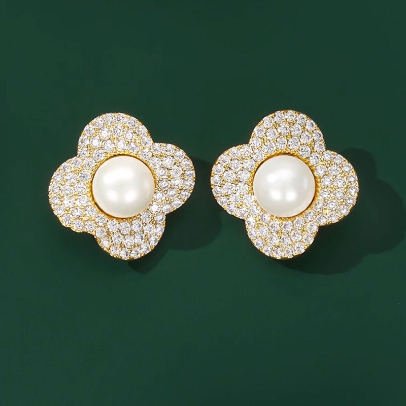 Elegantní náušnice ve tvaru květu přitahují pozornost svou zářivou kombinací zlatého základu, třpytivých zirkonů a jemné centrální perly. Jejich symetrický tvar připomíná stylizovaný čtyřlístek, který symbolizuje štěstí a eleganci v každém detailu.Středová bílá perla tvoří harmonický kontrast ke krystalově třpytivému okolí, jež je precizně osazeno desítkami drobných kamínků. Díky své velikosti a designu náušnice skvěle vyniknou při slavnostních i každodenních příležitostech.Jsou ideální volbou pro ženy, které milují decentní luxus a chtějí doplnit svůj šatník o výrazný, ale zároveň jemný šperk. Náušnice podtrhnou půvab obličeje a přinesou do outfitu nádech jemného lesku a sofistikovanosti. 💡Tip: Tyto náušnice krásně vyniknou v kombinaci s hladkým účesem a elegantními šaty bez ramínek. Perfektní volba na večírek, ples i jako luxusní doplněk k jednoduchému černému topu.