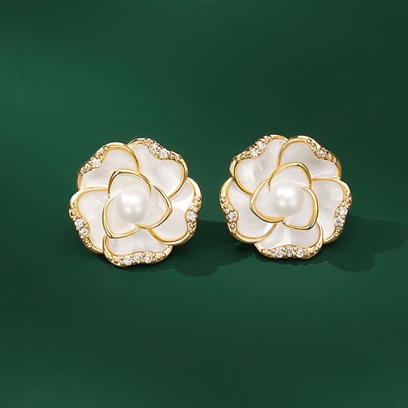 Elegantní náušnice ve tvaru květu okouzlí každou milovnici jemné krásy. Kombinace bílého smaltu, jemných kamínků a perlového středu vytváří harmonii, která působí čistě a luxusně zároveň. Zlatý obrys dodává šperku teplý nádech a zdůrazňuje jeho sofistikovaný tvar.Tyto náušnice jsou ideální volbou pro ženy, které si potrpí na detail a vkusné zpracování. Díky decentní velikosti krásně vyniknou i při každodenním nošení, ale neztratí se ani jako doplněk pro slavnostní příležitosti. Jejich květinový design evokuje něhu, ženskost a romantiku.Perla uprostřed květu symbolizuje čistotu a eleganci, zatímco třpytivé kamínky podél okvětních lístků dodávají celku slavnostní jiskru. Náušnice působí nadčasově a potěší každou ženu, která hledá výrazný, a přitom decentní šperk. 💡Tip: Tyto náušnice skvěle vyniknou s vyčesanými vlasy a světlými outfity, ideálně s bílou košilí, hedvábnými šaty nebo jemným svetrem. Perfektní volba na svatbu, ples či romantickou večeři.