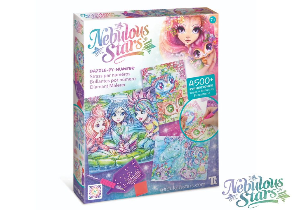 Nebulous Stars kamínkuj podle čísel set Nebulous Stars Ozdob kamínky podle čísel set. Vytvoř 3 třpytivá umělecká díla. Aplikuj kamínky pomocí aplikátoru podle čísel. Obsah balení - aplikátor na kamínky, 3 plátna s obrázkem, 4500 kamínků, přihrádka na kamínky, barevný návod.