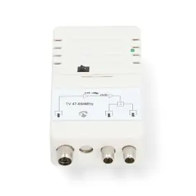 Nedis CATV Zesilovač bílá / Zesílení: 25 dB / 47 - 694 MHz / Počet výstupů: 2 / Ovládání zesílení