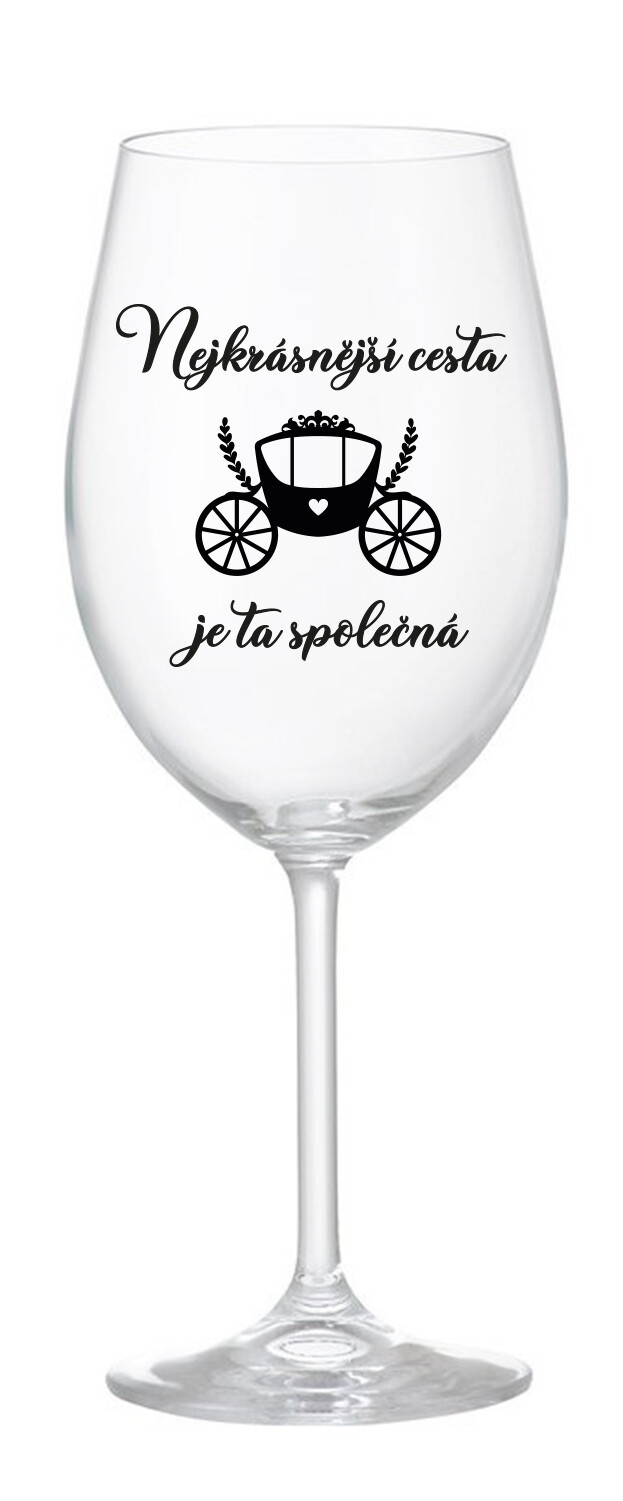 Vytvořte nezapomenutelnou atmosféru na Vaší svatbě s našimi elegantními skleněnými sklenicemi na víno s motivem NEJKRÁSNĚJŠÍ CESTA JE TA SPOLEČNÁ, které jsou navrženy s ohledem na romantiku a styl. Každá sklenice je vyrobena z kvalitního skla, které dodává jiskru a eleganci každému přípitku. Sklenice jsou nejen krásné, ale také praktické – perfektní pro podávání vína, šampaňského nebo jakéhokoli oblíbeného nápoje. Zpříjemněte si svatební oslavu a vytvořte nezapomenutelné vzpomínky s těmito sklenicemi, které můžete použít i po svatbě jako krásnou památku na tento jedinečný okamžik. Objednejte si je ještě dnes a udělejte ze svého dne D ten nejkouzelnější!