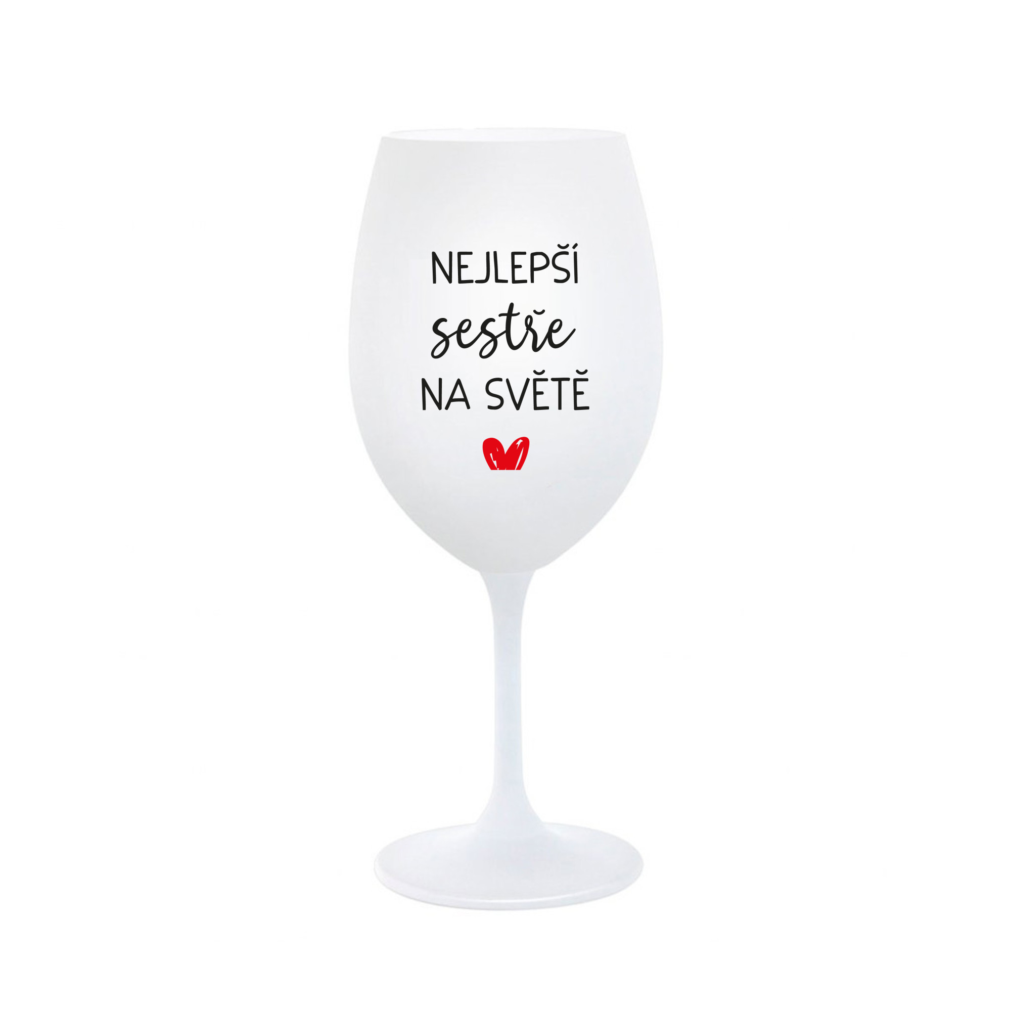 Vinná bílá sklenice s originálním motivem NEJLEPŠÍ SESTŘE NA SVĚTĚ je krásným a osobitým dárkem, které ale využijete i Vy sami třeba ve chvílích, kdy si budete chtít zpříjemnit náročný den. Tyto originální vinné sklenice jsou totiž nejen pro výjimečné události, ale i pro běžné večery, které si chcete zpříjemnit sklenkou dobrého vína. Jistě proto potěší každého milovníka vína, i toho, kdo si umí svůj život vychutnat plnými doušky. Materiál sklo. Vyrobené s láskou v ČR