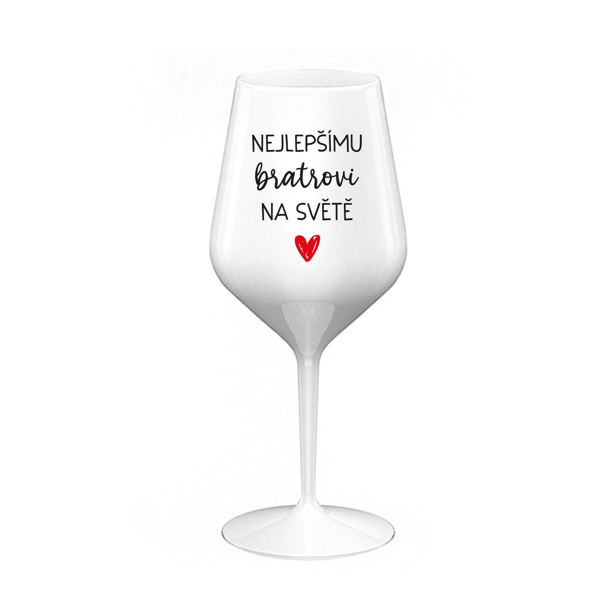 Nerozbitná bílá vinná sklenice s motivem NEJLEPŠÍMU BRATROVI NA SVĚTĚ je skvělá na zahradu, pláž, výlet, piknik a parádu udělá i při kempování. Jelikož je vyrobená z kvalitního polykarbonátu je de facto nerozbitná. Je to luxusní kousek, s nímž si víno můžete vychutnat prostě kdekoliv. Mají ergonomický tvar, který příjemně padne do ruky a protože je lehká, usnadňuje to její přenášení. Je snadno skladovatelná a lehce se čistí. Díky svému designu si s ní můžete vychutnat doopravdy kdekoliv bezproblémové pití výborného vína. Materiál PP. Vyrobené s láskou v ČR