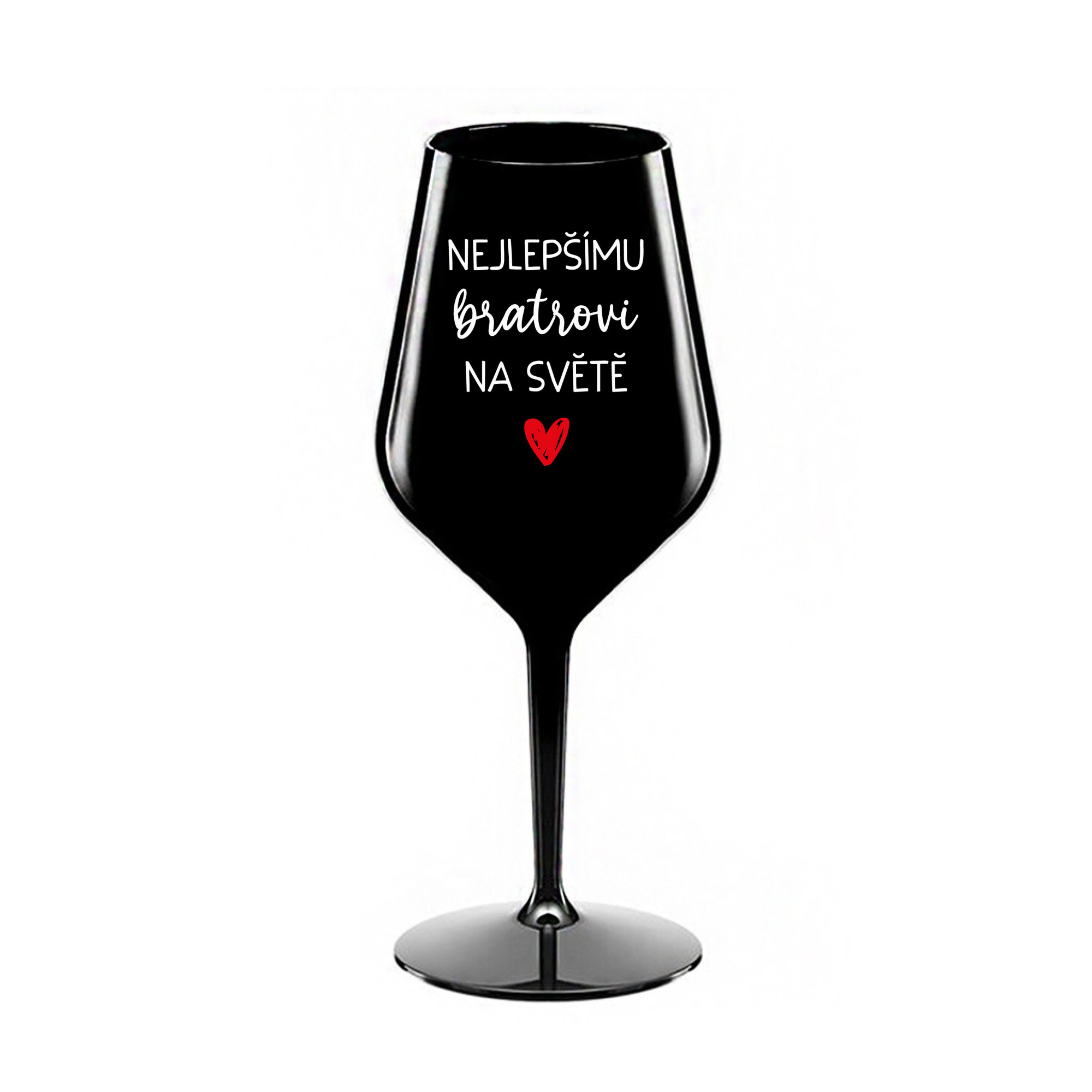 Nerozbitná černá vinná sklenice s motivem NEJLEPŠÍMU BRATROVI NA SVĚTĚ je skvělá na zahradu, pláž, výlet, piknik a parádu udělá i při kempování. Jelikož je vyrobená z kvalitního polykarbonátu je de facto nerozbitná. Je to luxusní kousek, s nímž si víno můžete vychutnat prostě kdekoliv. Mají ergonomický tvar, který příjemně padne do ruky a protože je lehká, usnadňuje to její přenášení. Je snadno skladovatelná a lehce se čistí. Díky svému designu si s ní můžete vychutnat doopravdy kdekoliv bezproblémové pití výborného vína. Materiál PP. Vyrobené s láskou v ČR