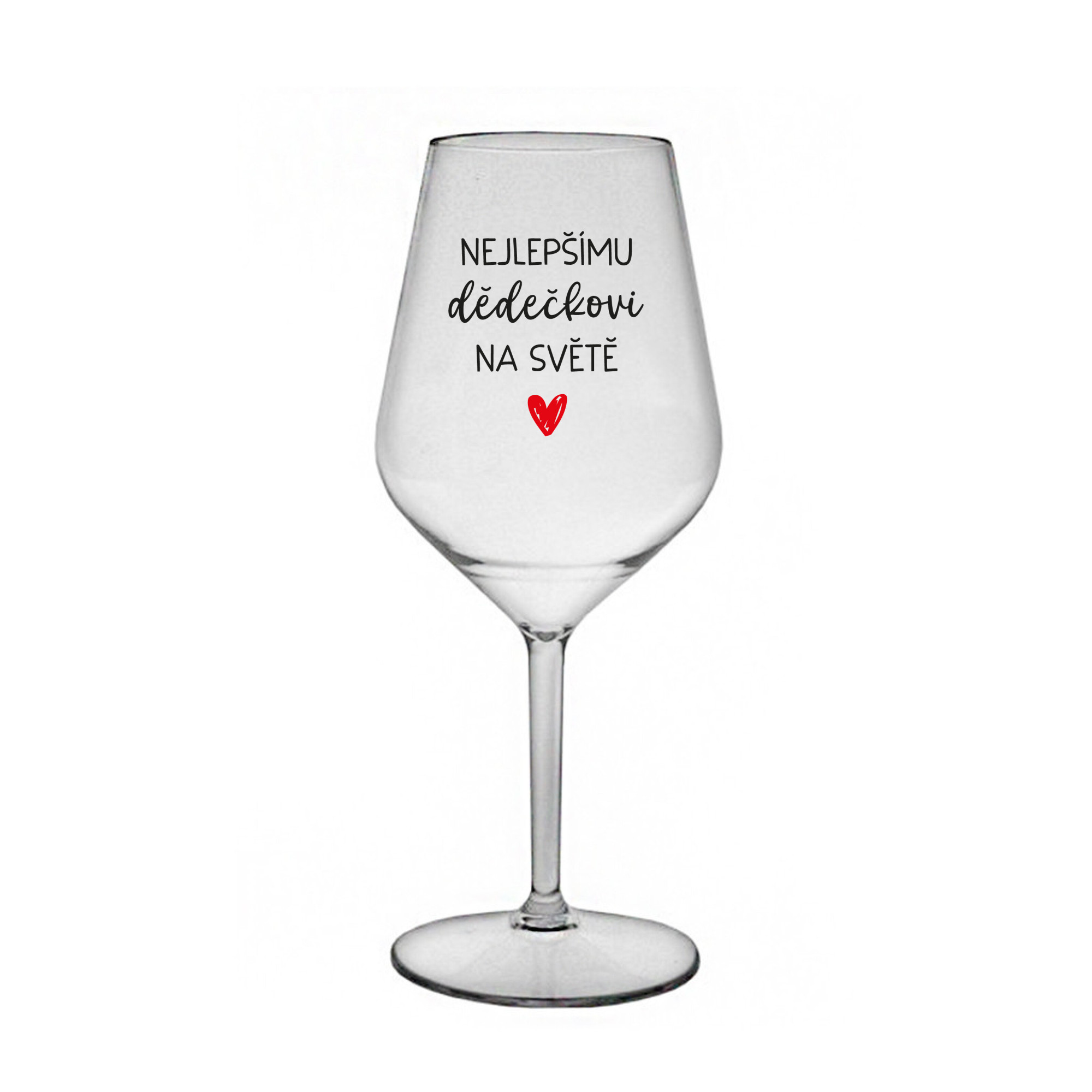 Nerozbitná čirá vinná sklenice s motivem NEJLEPŠÍMU DĚDĚČKOVI NA SVĚTĚ je skvělá na zahradu, pláž, výlet, piknik a parádu udělá i při kempování. Jelikož je vyrobená z kvalitního polykarbonátu je de facto nerozbitná. Je to luxusní kousek, s nímž si víno můžete vychutnat prostě kdekoliv. Mají ergonomický tvar, který příjemně padne do ruky a protože je lehká, usnadňuje to její přenášení. Je snadno skladovatelná a lehce se čistí. Díky svému designu si s ní můžete vychutnat doopravdy kdekoliv bezproblémové pití výborného vína. Materiál PP. Vyrobené s láskou v ČR