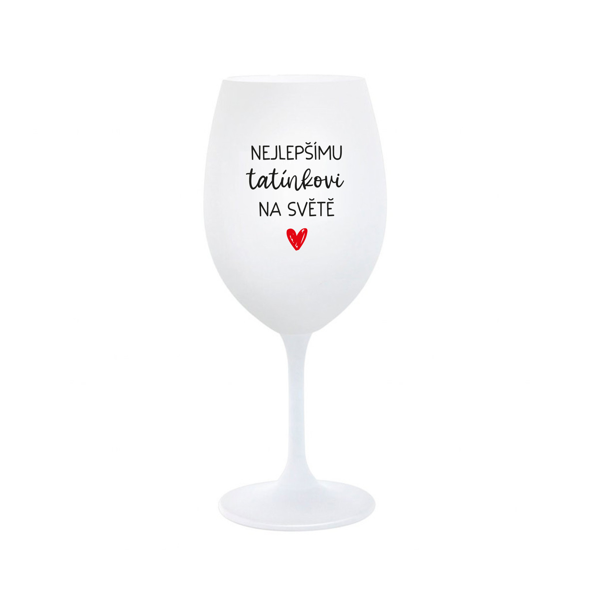 Vinná bílá sklenice s originálním motivem NEJLEPŠÍMU TATÍNKOVI NA SVĚTĚ je krásným a osobitým dárkem, které ale využijete i Vy sami třeba ve chvílích, kdy si budete chtít zpříjemnit náročný den. Tyto originální vinné sklenice jsou totiž nejen pro výjimečné události, ale i pro běžné večery, které si chcete zpříjemnit sklenkou dobrého vína. Jistě proto potěší každého milovníka vína, i toho, kdo si umí svůj život vychutnat plnými doušky. Materiál sklo. Vyrobené s láskou v ČR