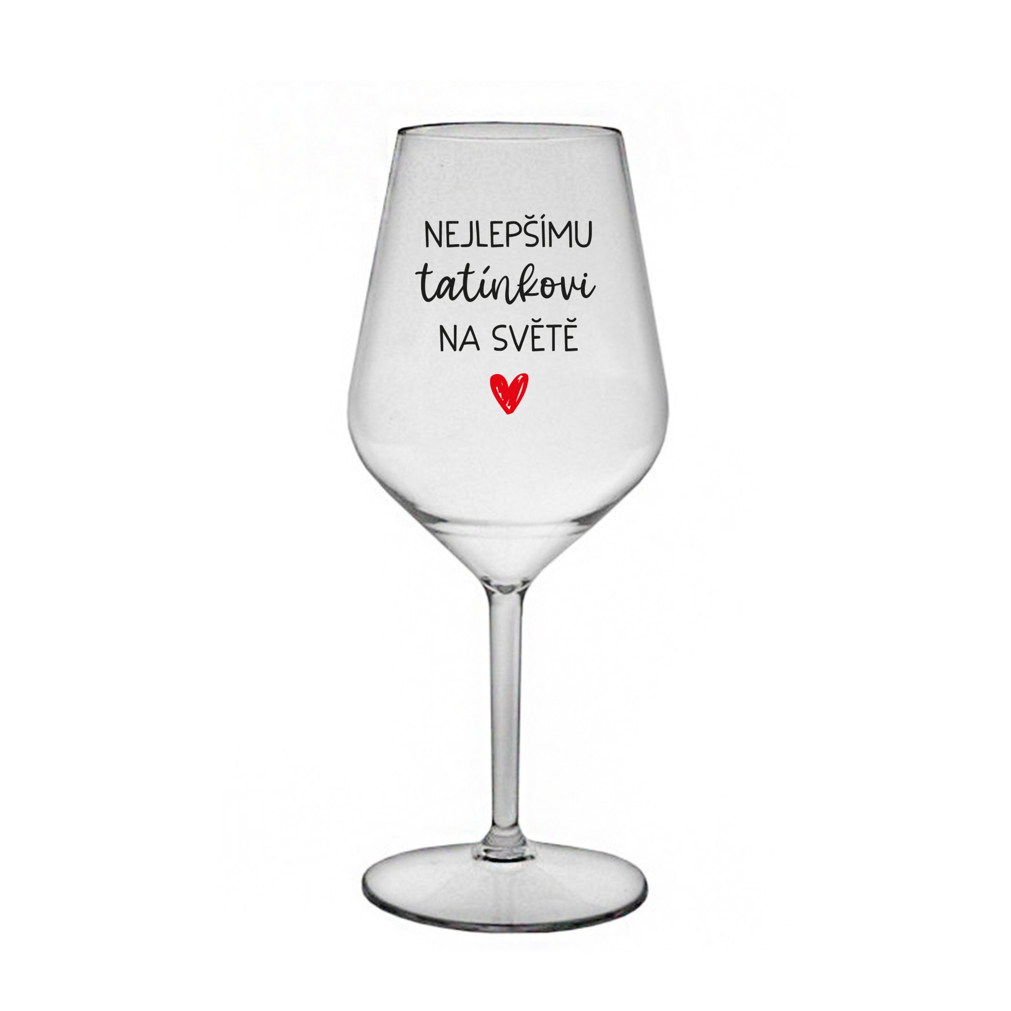 Nerozbitná čirá vinná sklenice s motivem NEJLEPŠÍMU TATÍNKOVI NA SVĚTĚ je skvělá na zahradu, pláž, výlet, piknik a parádu udělá i při kempování. Jelikož je vyrobená z kvalitního polykarbonátu je de facto nerozbitná. Je to luxusní kousek, s nímž si víno můžete vychutnat prostě kdekoliv. Mají ergonomický tvar, který příjemně padne do ruky a protože je lehká, usnadňuje to její přenášení. Je snadno skladovatelná a lehce se čistí. Díky svému designu si s ní můžete vychutnat doopravdy kdekoliv bezproblémové pití výborného vína. Materiál PP. Vyrobené s láskou v ČR