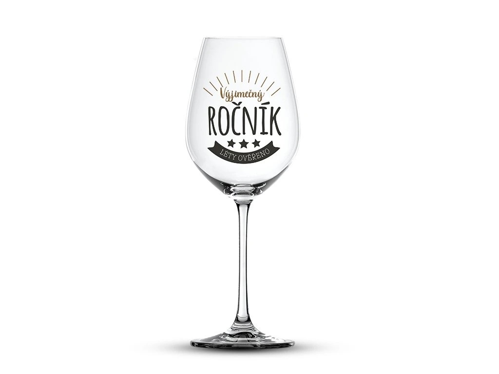 Dobré víno je skvělým společníkem ať už k narozeninové oslavě, večírku nebo jen tak k relaxaci po dlouhém dni. Dopřejte si ho s trochou humoru ve sklenici na víno s textem „Výjimečný ročník“.