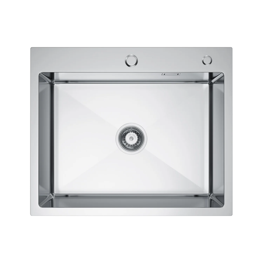Způsob montáže: Zapuštěná montáž Materiál: Nerezová ocel Ocelová povrchová úprava: Kartáčovaný satén Barva: Stříbrná nerezová ocel Rozměry dřezu: 600 mm x 500 mm x 210 mm Rozměry komory: 550 mm x 400 mm Tloušťka kovu komory: 0,8 mm Tloušťka kovu ráfku: 3 mm Přepadový otvor v míse: Ano Průměr odtoku: 114 mm Otvor pro kohoutek: Ano, 35 mm Otvor dávkovače: Ano, 28 mm
