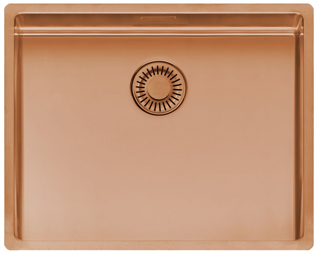 Nerezový dřez 50x40 cm, povrch Copper / měď, montáž horní / do roviny / spodní Materiál: Nerezová ocel 304 Tloušťka materiálu: 0,9 mm Povrchová úprava: PVD Copper / měď Montáž: horní / do roviny / spodní Při spodní montáži nutno doobjednat úchytky R18996 Odpadové sítko Comfort pro lepší vzhled a jednodušší čištění Obsahuje odpadovou sadu bez excentru (ruční ovládání výpusti) Sifon není součástí dodávky (možno doobjednat pod označením R18934) Vnitřní rozměry vaničky (ŠxHxV): 503 x 403 x 200 mm Celkové rozměry dřezu (ŠxHxV): 540 x 440 x 180 mm Rádius: 10 mm Minimální šířka skříňky: 600 mm
