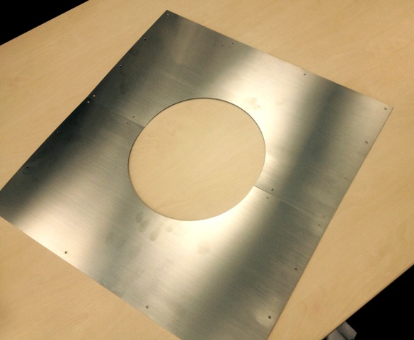 Nerezový krycí plech ke komínu u sudové sauny. Průměr kruhu je 115mm. Jedná se o plechovým lem z vnitřní strany do sudové sauny na odstínění tepla.