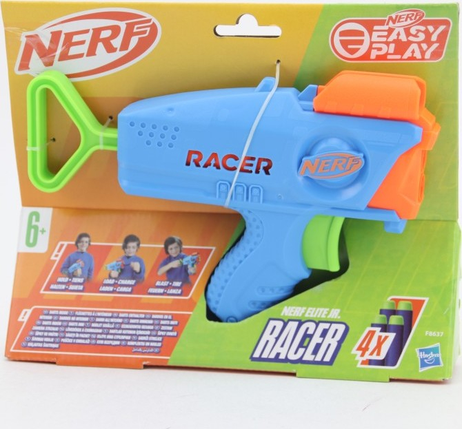 Tento lehký a snadno ovladatelný blaster je určen pro děti, které s hrou od značky NERF začínají. Díky kompaktní velikosti dobře padne do menší ruky, je snadno přenosný a manipulace s ním je jednoduchá i pro mladší děti — zbraně se nabíjejí dopředu a natahování vyžaduje jen minimální sílu. Pistole vystřeluje pěnové náboje (šipky), které jsou měkké a vhodné pro bezpečnou hru doma i venku. Jednoduše: „vlož – nabij – vystřel“ a hra může začít. Balení obsahuje – 1 × blaster „Elite Jr Racer, 4 × „NERF Elite“ pěnové náboje.