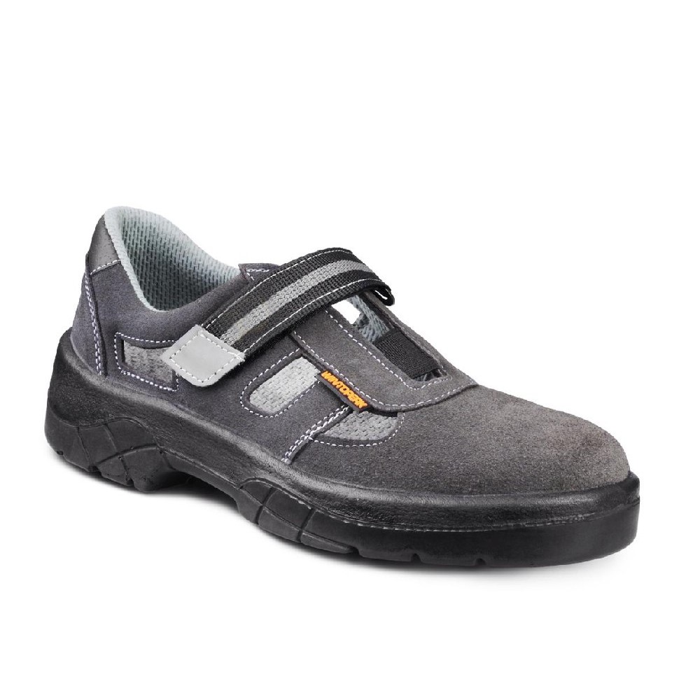 Sandál, pohodlný široký z hovězí usně, otevřený svršek pro zvýšenou ventilaci, prodyšná podšívka s výbornou absorbcí potu, pohodlná vyndavací antistatická stélka se systémem kontroly pocení, špeciální anatomická polostélka zlepšuje pohodlí při dlouhém stání a chůzi, protiskluzná, antistatická a olejuvzdorná podešev vyrobená z dvousložkového polyuretanu PU2D, tlumí otřesy v patní části, s ocelou špicí odolnou proti nárazu energie 200J a stlačení silou 15kN, barva šedá, vel. 36-48