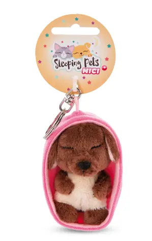 NICI klíčenka Spící pejsek 8cm hnědý košík růžový