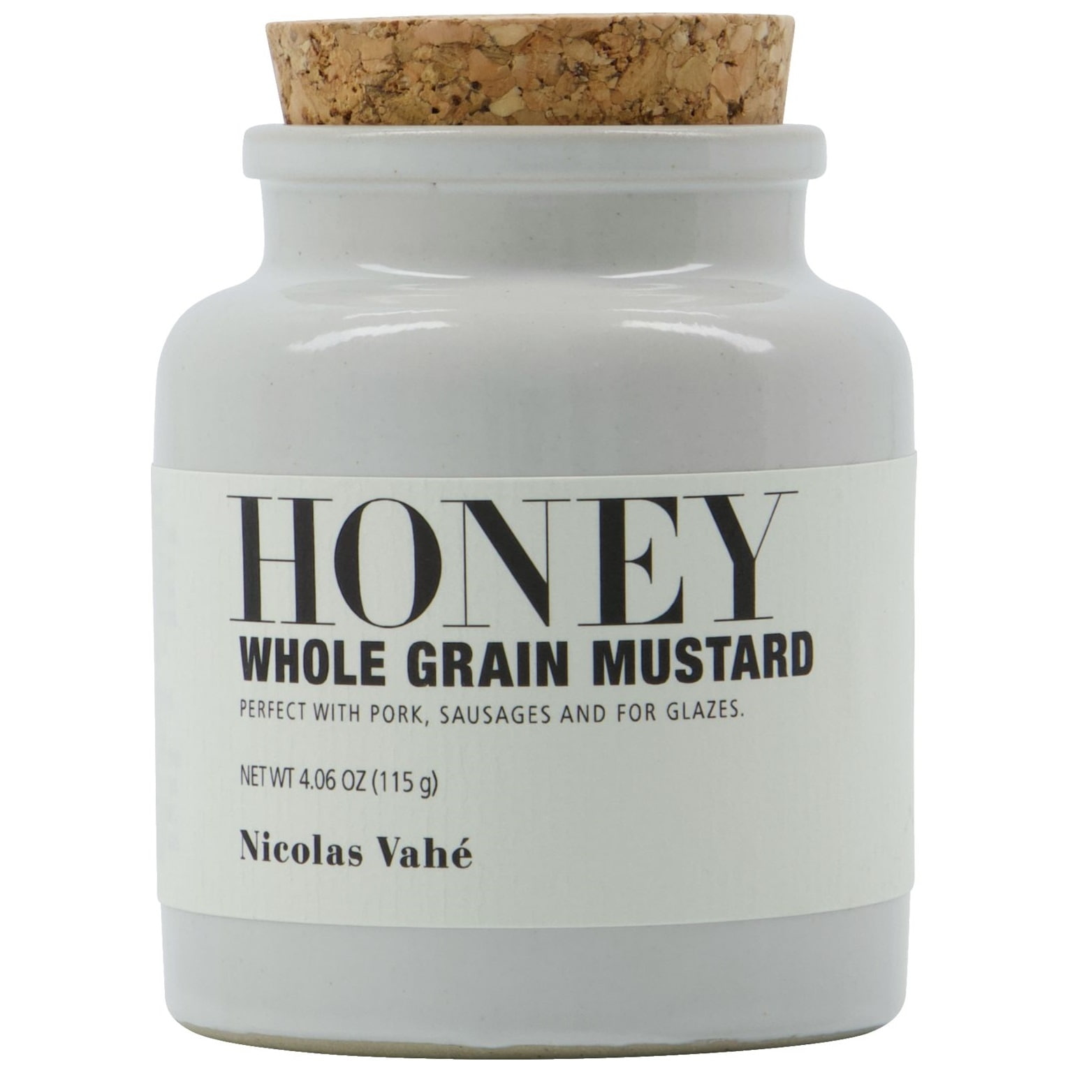 Nicolas Vahé Celozrnná hořčice s medem v designové dóze 115 g, bílá barva, keramika, korek. Objevte kulinářský požitek s touto vynikající celozrnnou hořčicí s medovými tóny, namíchanou podle receptury šéfkuchaře Nicolase Vahé.