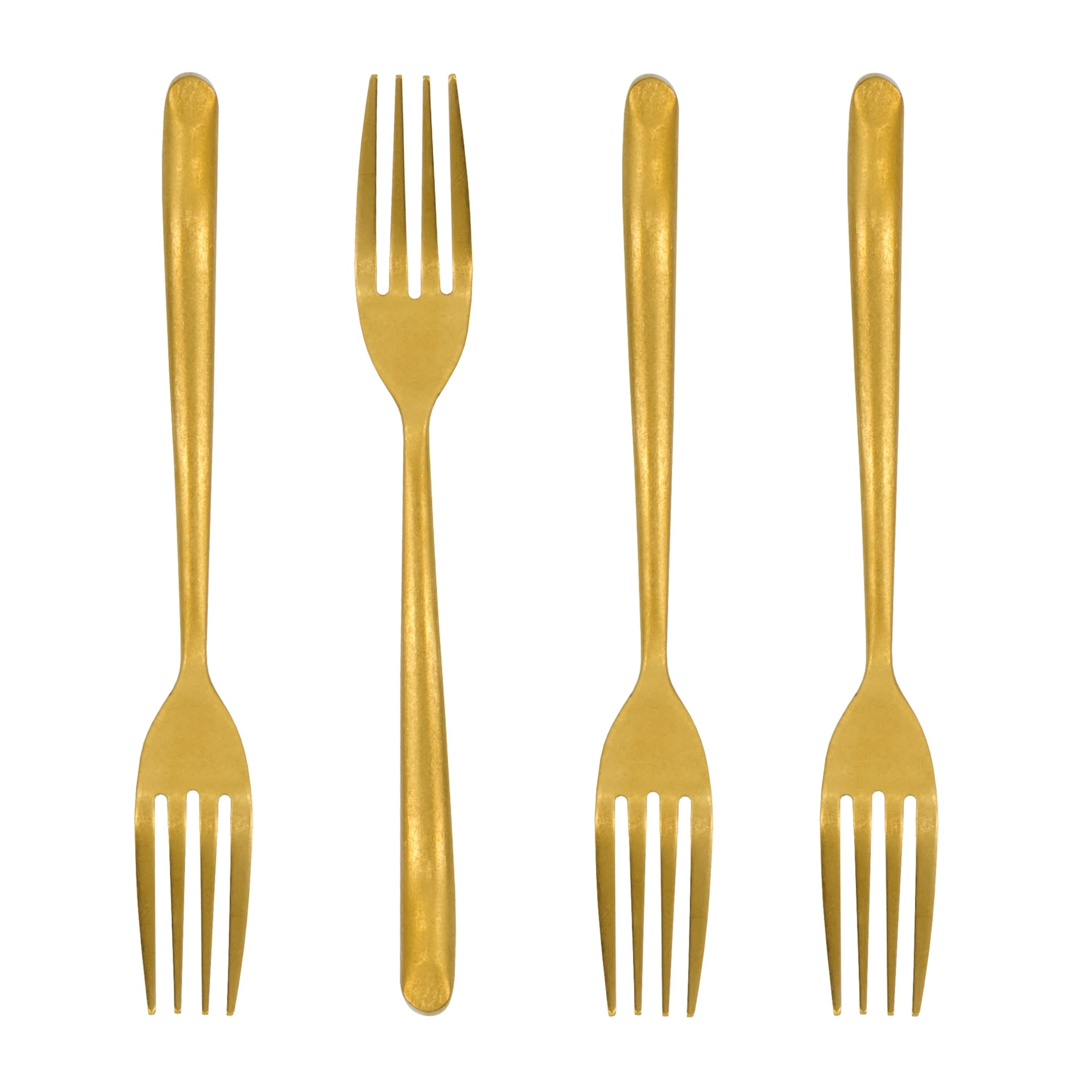 Každá vidlička je vyrobena z kvalitní nerezové oceli. Příbor je tak vysoce odolný a bude vám zpříjemňovat sladké chvíle po dlouhou řadu let. délka 14,8 cm / výška 1,4 cm / šířka 1,9 cm Vyrobeno z nerezi s povrchovou úpravou starožitné mosazi.