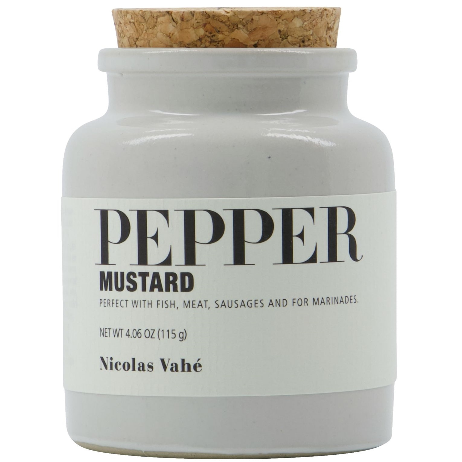 Složení: hořčice 96% (hořčičná semínka, voda, ocet, sůl, cukr, konzervant: hydrogensiřičitan sodný), extra panenský olivový olej, malabarský pepř 1%, kostkový pepř 0,5%, madagaskarský pepř 0,5%.