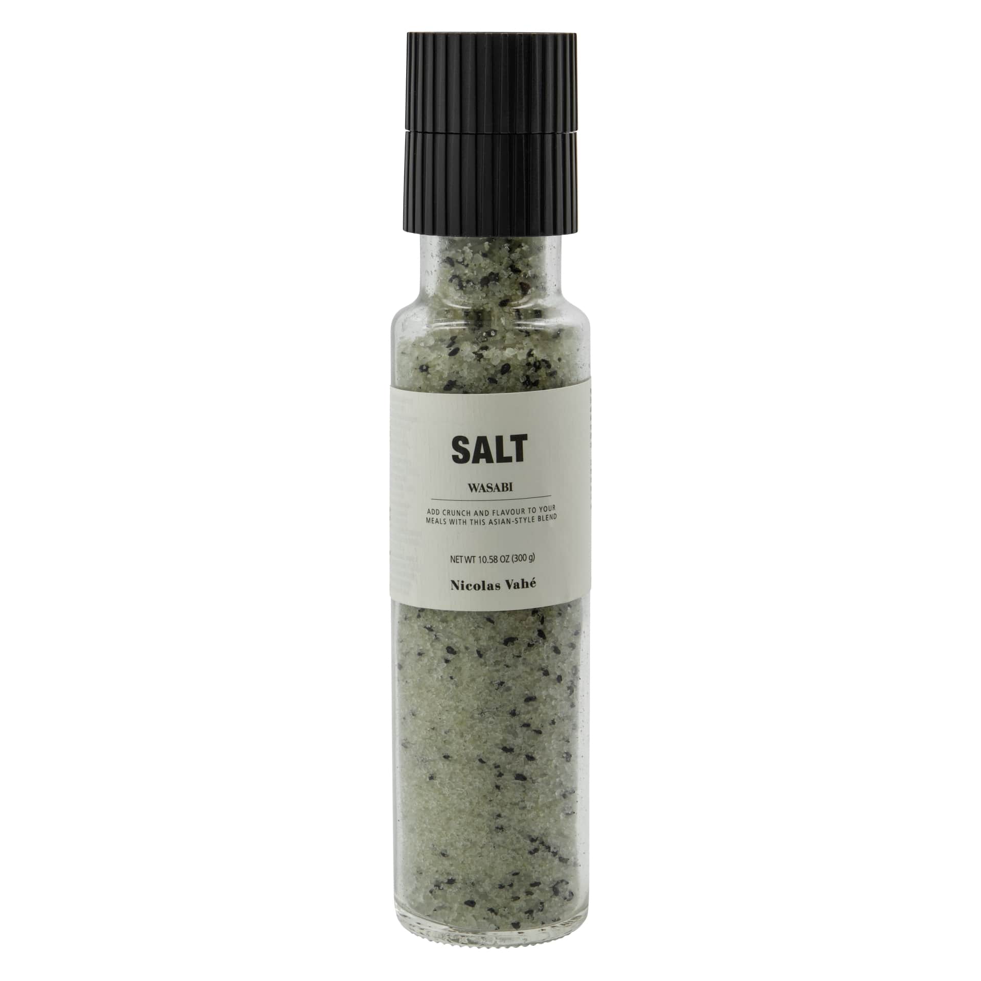 Složení: 89 % mořská sůl (protihrudkující látka E535), 3,6 % wasabi, 3,6 % černá sezamová semínka, přírodní aromata; může obsahovat stopy ořechů, arašídů, sezamu, mléka, hořčice a siřičitanů hmotnost 300 g Dodáváno ve skleněné lahvičce s mlýnkem.