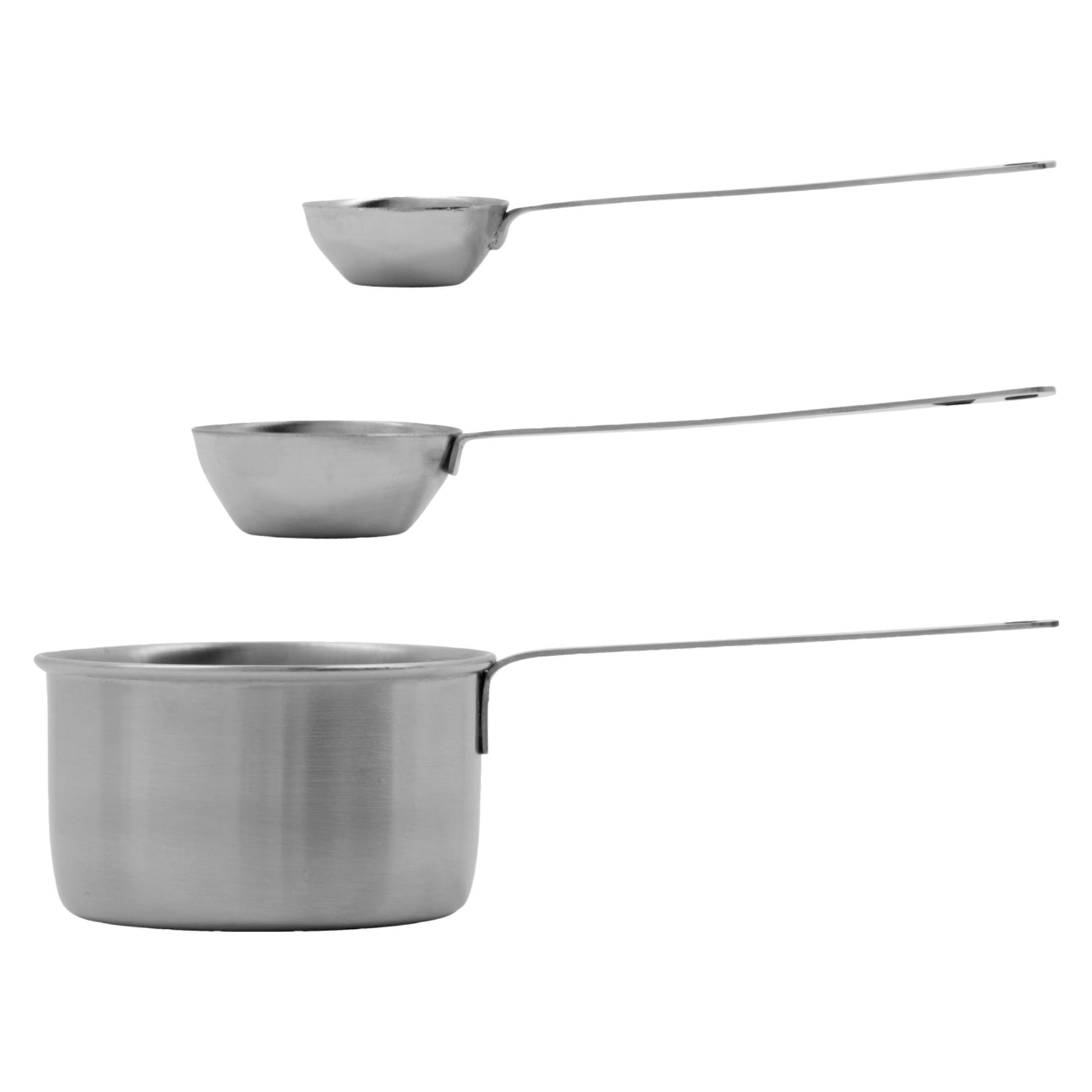 Elegantní minimalistický design v broušeném provedení se hodí do každé kuchyně. Odměrky jsou stohovatelné, takže nezabírají mnoho místa, a po použití je jednoduše vložíte do myčky. Malý, ale nepostradatelný doplněk pro všechny, kdo si rádi užívají radost z vaření. délka 11 - 15,5 cm / výška 1 - 4 cm / šířka 3 - 7 cm Vyrobeno ze 100% nerezové oceli.