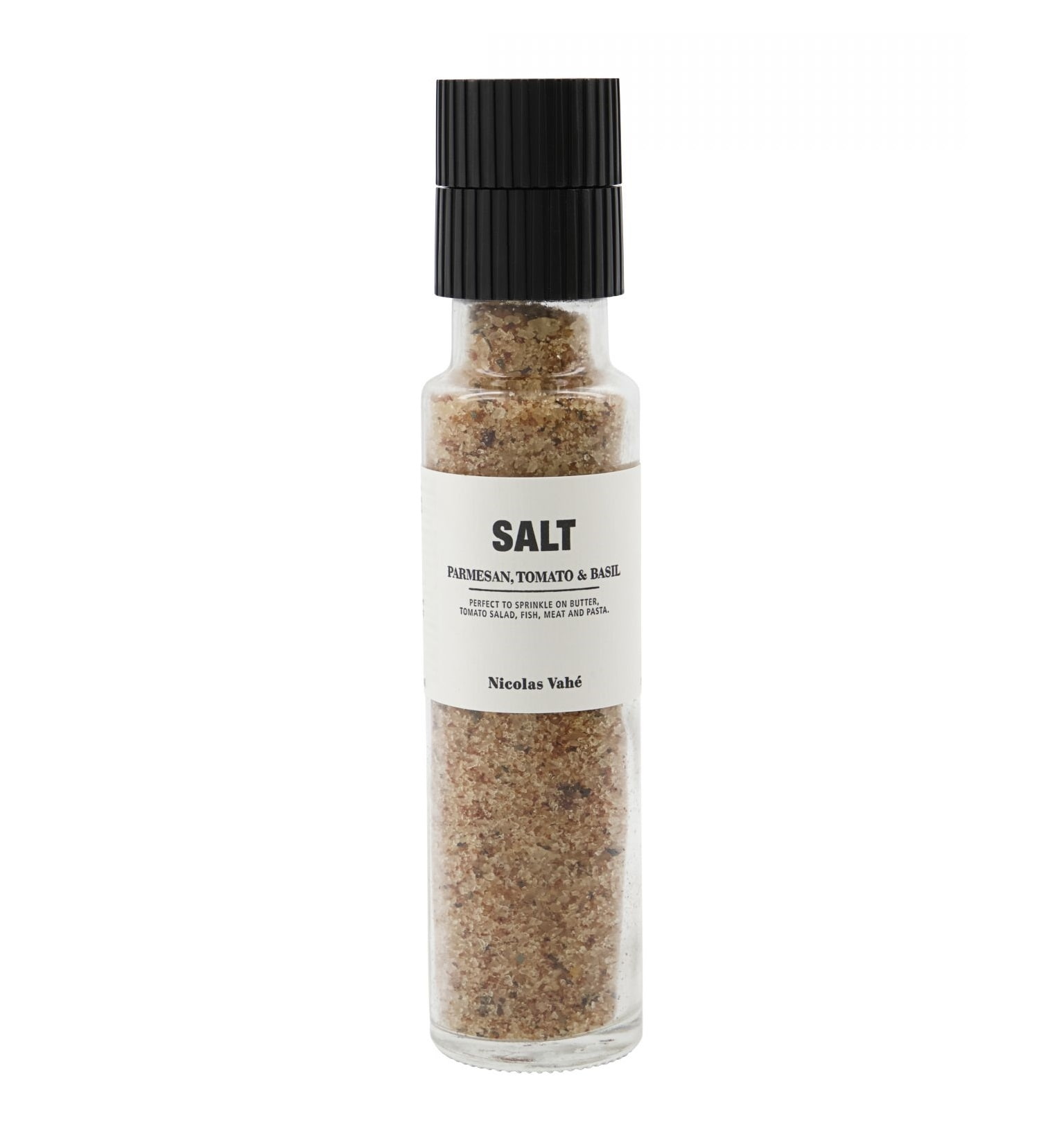 Nicolas Vahé Ochucená sůl Parmesan Tomato Basil 300 g, růžová barva, černá barva, čirá barva, sklo. Tato sůl od Nicolas Vahé je skvělou kombinací rajčat, parmazánu a bazalky, které dohromady tvoří jedinečný mix. Hrubá sůl s mlýnkem je přímo předurčena být vidět, proto ji nechte na jídelním stole nebo na kuchyňské lince, které dodá profesionální vzhled.