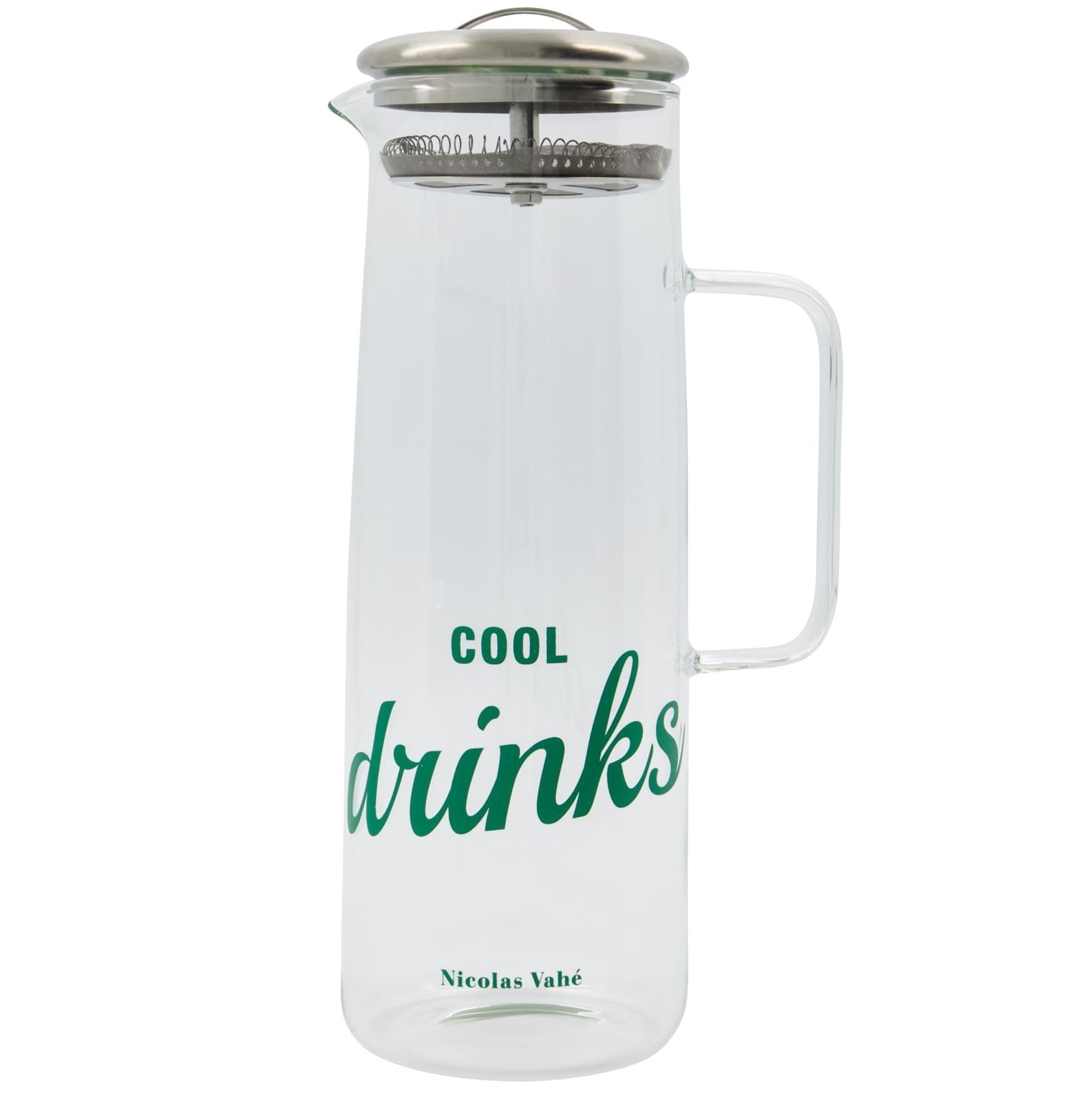 Nicolas Vahé Skleněný džbán se sítkem Cool Drinks 1,5 l, čirá barva, sklo. Elegantní skleněný džbán s integrovaným nerezovým sítkem – ideální pro letní osvěžení!