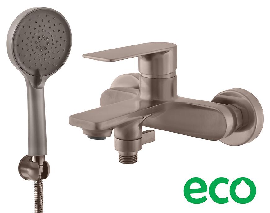 Vodovodní baterie vanová nástěnná Elegantní design, úspora vody, příznivá cena. To je nová série baterií NIL. Díky jemným oblým tvarům se baterie výborně kombinují s ostatním vybavením koupelny, zejména s koupelnovými doplňky NIL. Vanová baterie disponuje zapuštěným perlátorém, který je úsporný s průtokem 12,5 l/min, díky kterému ušetříte stovky litrů vody ročně, přičemž komfort a účinnost mytí zůstávají zachovány. Nejenže uspoříte v peněžence, ale také přispíváte k ochraně životního prostředí tím, že omezujete plýtvání vodními zdroji. povrchová úprava PVD Vodovodní baterie vanová nástěnná se sprchou a pevným kovovým držákem. Vodovodní baterie vanová NIL se vyrábí pouze v rozteči 150 mm. Zapuštěný perlátor přidává umyvadlové baterií eleganci Keramický přepínač zaručují dlouhou životnost vanové baterií. Sprchová hadice musí mít systém proti přetočení. Baterie se dodává včetně klíče na perlátor, který zajistí snadnou demontáž při čištění perlátoru.Tuto baterii lze kombinovat s vanovými a sprchovými bateriemi ze série NIL - metal grey - kartáčovaná, SLEZÁK - RAV.