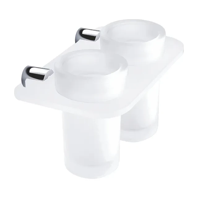 Nimco Bormo chrom dvojitý držák sklenek BR X3-58DW-26 Dvojitý držák sklenek. Úchyt plexiglass s matovaným povrchem. Současné technologie a téměř ničím neomezená kreativita nám umožňuje dohromady vytvořit rozmanitou mozaiku trendů, ze kterých si vybere opravdu každý. Poličky IXI jsou jedním z nich. Vyrobeny jsou ze speciálního mléčného plexiskla s matovaným povrchem. Od běžného skla se odlišují několika zásadními prvky, které nabízí jeho využití právě v koupelnách. Jsou bezpečnější než sklo. Jejich rozbití není snadné. Frézováním je možné docílit stylových otvorů, které působí zajímavě a stylově. Oproti sklu mají bělejší zabarvení, které v osvětlené koupelně působí opravdu esteticky, příjemně a čistě bíle. Nádobky jsou vyrobené z matovaného skla.