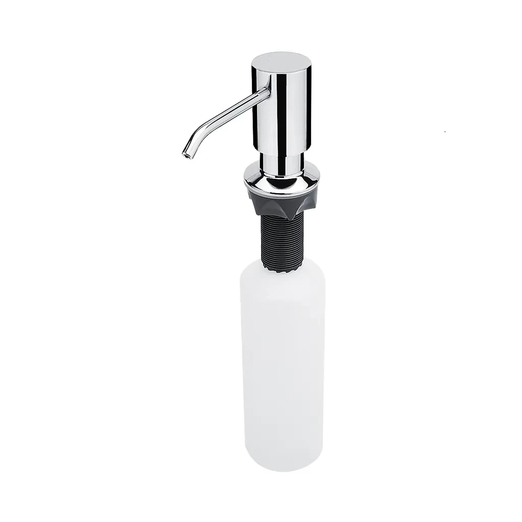 Nimco Model 3000 chrom dávkovač vestavěný 30 mm UN 3031V-26 Vestavěný dávkovač na mýdlo, dezinf. gel, prostředek k mytí nádobí. Hlava pumpy průměr 30 mm. Umyvadla v koupelnách a dřezy v kuchyních jsou jednoznačně nejpoužívanějšími zařízeními vašeho obydlí. Čas i práci Vám ušetří vestavěný dávkovač na tekuté mýdlo, dezinfekčního gelu nebo prostředku na mytí nádobí. Plastová nádobka na mýdlo má obsah 350ml. Je možné dokoupit k dávkovači nádobku 1000ml ( označení 1029VN-XL). Plnění nádobky je shora vyjmutím dávkovací pumpy. Pumpa je mosazná s povrchovou úpravou chrom, závit je z vysoce kvalitního plastu POM. Hlava pumpy průměr 30mm. Optimální výška desky 40-50mm. Výška závitu 60mm. Průměr závitu 28mm. Průměr otvoru pro vyvrtání pro vestavěný dávkovač je 29-38mm.