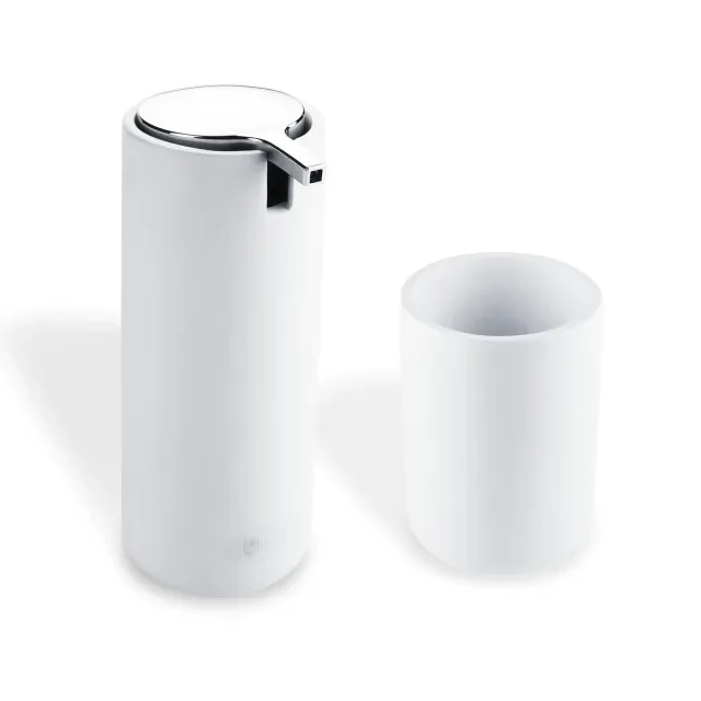Nimco Omi bílá mat dávkovač na tekuté mýdlo s pohárkem OM 1605831-05 Set s dávkovačem na mýdlo a pohárkem na kartáčky. Objem 175 ml. Barva bílá. Materiál polyresin. Černá a bílá barva se svou mírou vytříbeného vkusu a smyslné elegance těžko nacházejí obdobu. Černá je barvou, která pohlcuje světlo a zároveň je zcela kontrastní. Je to barva do jisté míry absolutní. Jediná barva, která se jí takříkajíc může postavit je barva z opačného konce barevného spektra a tou je barva bílá. Tyto dva vzdálené a silné kontrasty pak dokáží vytvářet onu obdivuhodnou a stokrát napodobovanou dávku naprosté elegance.