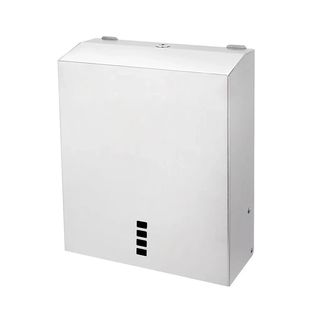 Nimco zásobník - nerez brus ručníků HPM 27080-10 Zásobník papírových ručníků skládaných. Broušená nerez ocel 1.4301. Uchycení zásobníku pomocí 2-3 šroubů, dle potřeby. Rozteč mezi 2 hlavními otvory pro uchycení 229-237mm. Součástí balení jsou 3 šrouby, 3 hmoždinky, 2x bezpečnostní klíček. Doporučené naplnění zásobníku je do 2/3. Rozměry papírových ručníků ve skládaném skladu 23-25cm x 11-12cm. Materiál je vysoce kvalitní broušená nerez ocel 1.4301. Velikost otvoru pro vytahování papírových utěrek je 25cm.