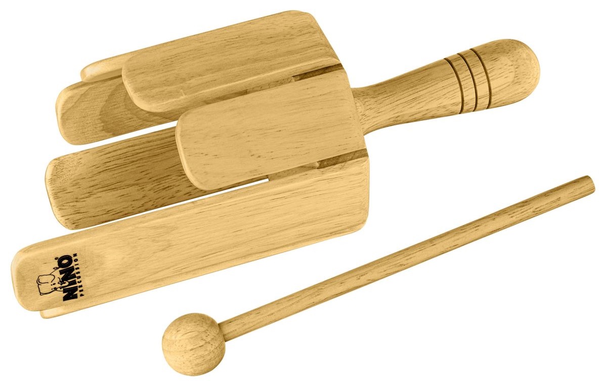 Agogo Agogo značky Nino Percussion se dvěma dřevěnými zvony. Nástroj je vhodný nejen pro děti, ale i pro všechny další hudebníky. Na agogo se hraje pomocí přibalené paličky, zvuky lze vytvářet i drhnutím zvlněného povrchu (podobně jako u nástroje guiro).