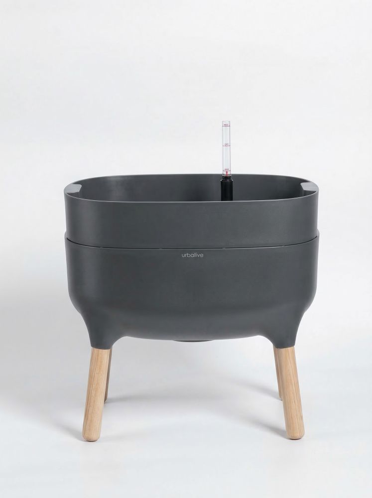 Bude se v ní výborně dařit pokojovým rostlinám, květinám, bylinkám nebo méně náročné zelenině. Originální design kombinující dřevo a plast zpracoval přední český designér Jiří Pelcl. Dřevěné nohy umožní snadný přístup k rostlinám a příjemnou pohledovou výšku. Množství substrátu: 21,7 l Množství vody: 13 l