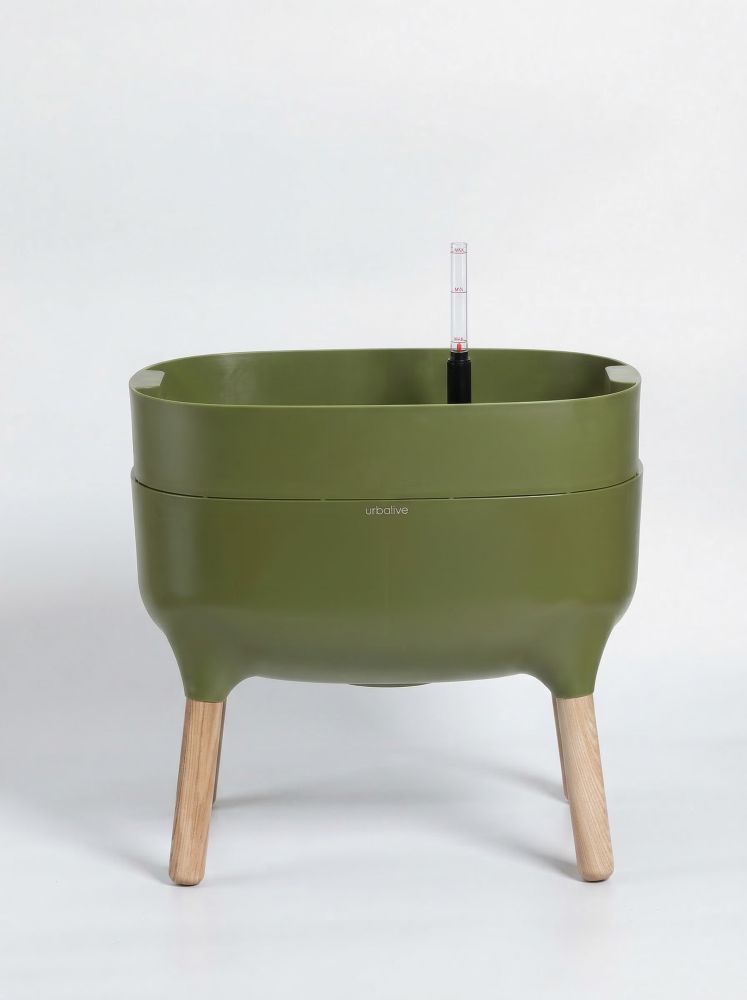 Bude se v ní výborně dařit pokojovým rostlinám, květinám, bylinkám nebo méně náročné zelenině. Originální design kombinující dřevo a plast zpracoval přední český designér Jiří Pelcl. Dřevěné nohy umožní snadný přístup k rostlinám a příjemnou pohledovou výšku. Množství substrátu: 21,7 l Množství vody: 13 l