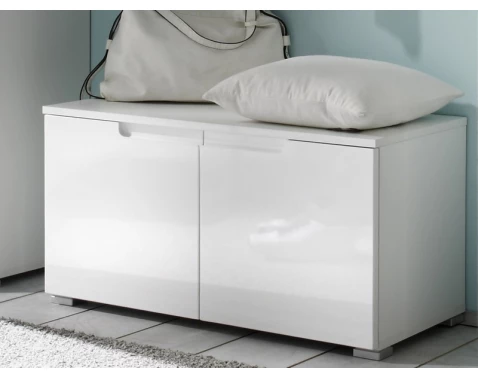Nízký botník/předsíňová lavice Spice, lesklý bílý