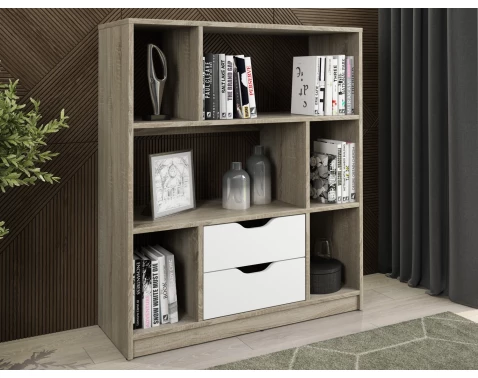 Nízký regál/knihovna Sten Mini, dub sonoma/bílá
