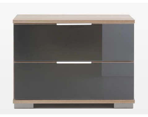 Noční stolek z programu Easy plus nabízí 2 prostorné zásuvky nad sebou. V kombinaci dekoru dub sonoma a šedého skla.