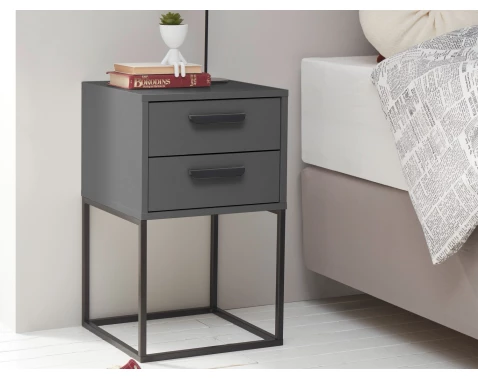 Noční stolek se 2 zásuvkami Suna, grafitový