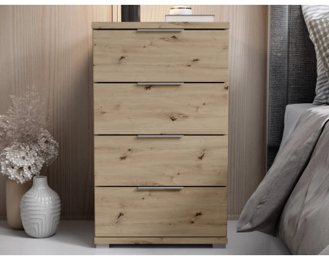 Vysoký noční stolek/skříňka se 4 zásuvkami v moderním minimalistickém stylu působí nadčasově. Má celkovou výšku 79 cm a je vyroben v dekoru dub artisan.