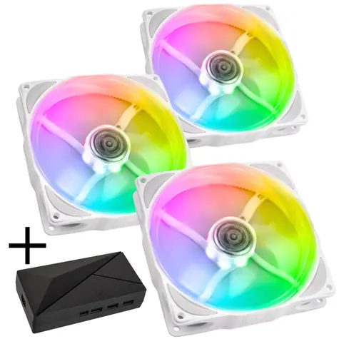 Noiseblocker NB-eLoop X B12-P ARGB bílá + Port Hub / 120mm / 28.4 dB @ 2000 RPM / 77.93 CFM / 4-Pin PWM + 3-Pin