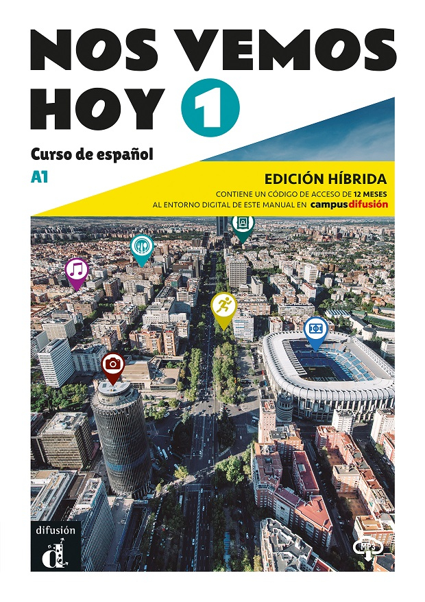 Esta edición híbrida de Nos vemos hoy 1 es la opción ideal para compaginar las ventajas del papel y de las tecnologías digitales, tanto en cursos presenciales como híbridos (blended) y a distancia. Consta del libro del alumno impreso más un código de acceso de 12 meses a Campus Difusión con el que el estudiante puede acceder: al libro y al cuaderno digitales de Nos vemos hoy 1. a todos los recursos propios de este manual (audios, vídeos, ejercicios autocorregibles, etc.) y a todas las funcionalidades de comunicación, asignación de tareas, evaluación y otras de la plataforma.