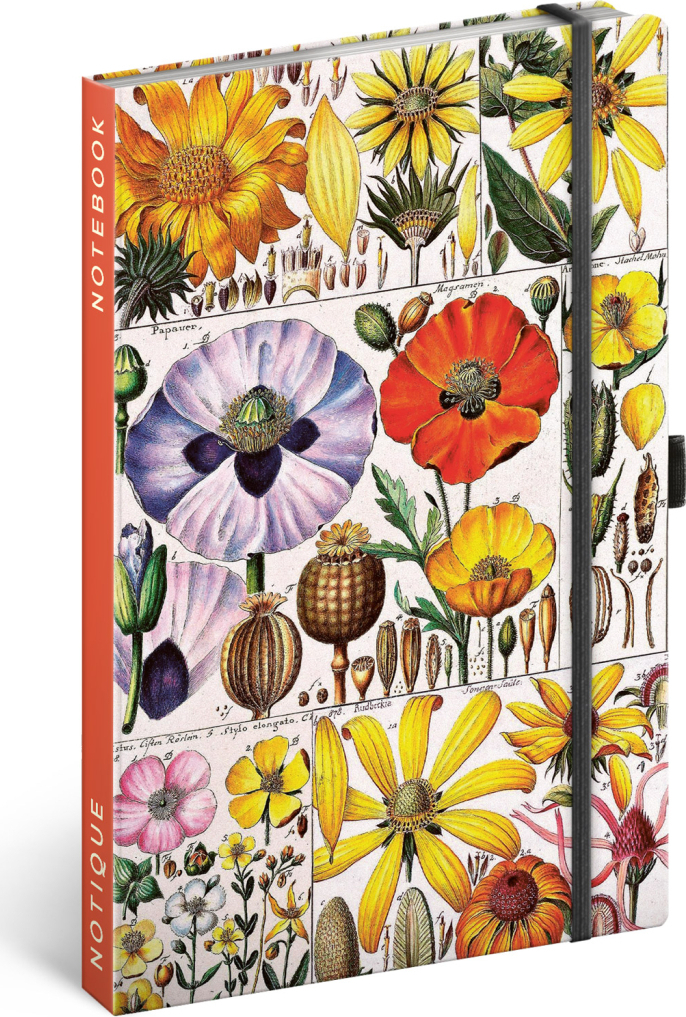 Notes v pevných deskách z kolekce Kateřiny Winterové s ilustracemi květin, s uzavíráním na gumičku, kapsou na drobnosti a poutkem na tužku. Vevnitř najdete 172 linkovaných stran na žlutém papíře pro zapsání všech vašich nápadů.