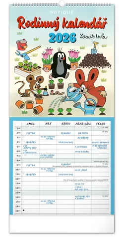 NOTIQUE Nástěnný kalendář Rodinný plánovací Krteček 2026, 21 x 42 cm