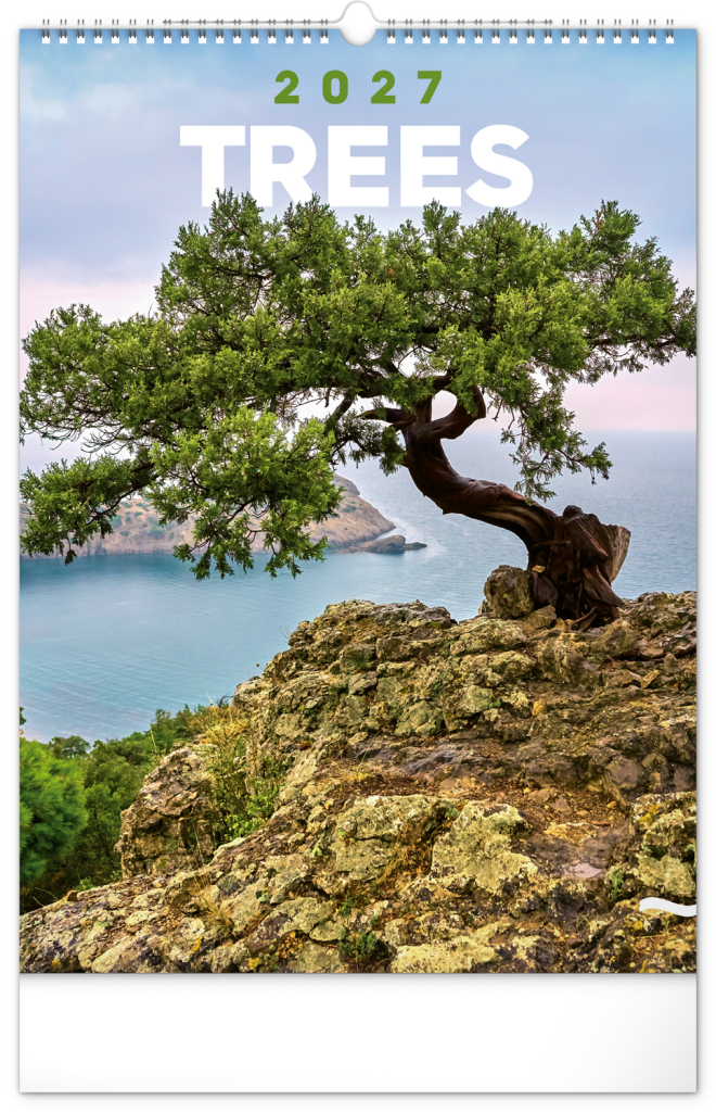 Nástěnný kalendář s fotografiemi pestrých scenérií s dominantami majestátních stromů z celého světa. Fotografie jsou doplněny univerzálním kalendáriem na bílém pozadí.