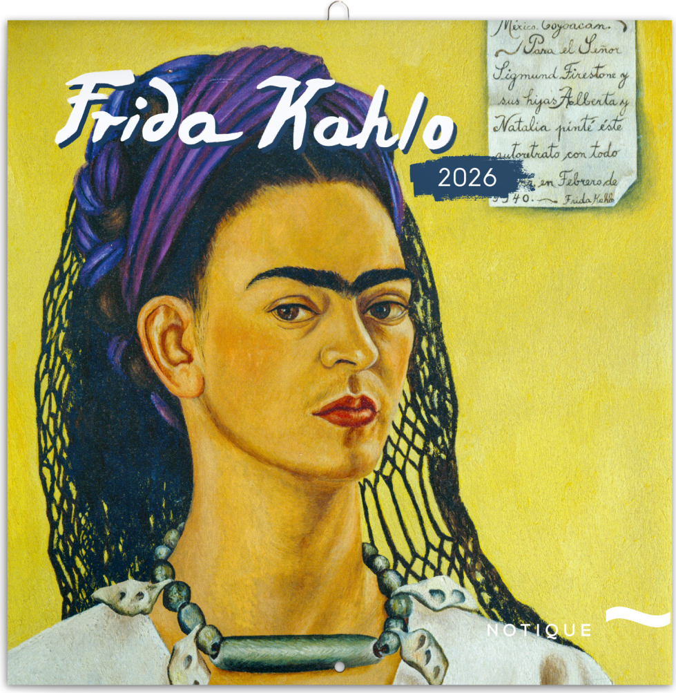 Ponořte se do světa malířky, jejíž život i tvorba se staly symbolem odvahy a osobitého umění. Obrazy ikonické umělkyně Fridy Kahlo na stránkách poznámkového kalendáře. Obsahuje přehledné kalendárium od září 2025 do prosince 2026 v šesti jazycích, měsíční fáze, důležité svátky a prostor pro poznámky na každý den.