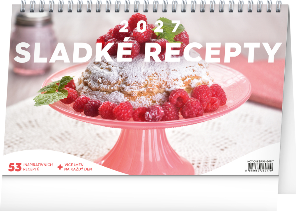 Kalendář s recepty na zákusky, moučníky i „sladké tečky“. Každý recept je doplněn fotografií výsledného pokrmu. Týdenní kalendárium s prostorem pro poznámky obsahuje také svátky, památné dny, měsíční fáze a přehled na celý rok.