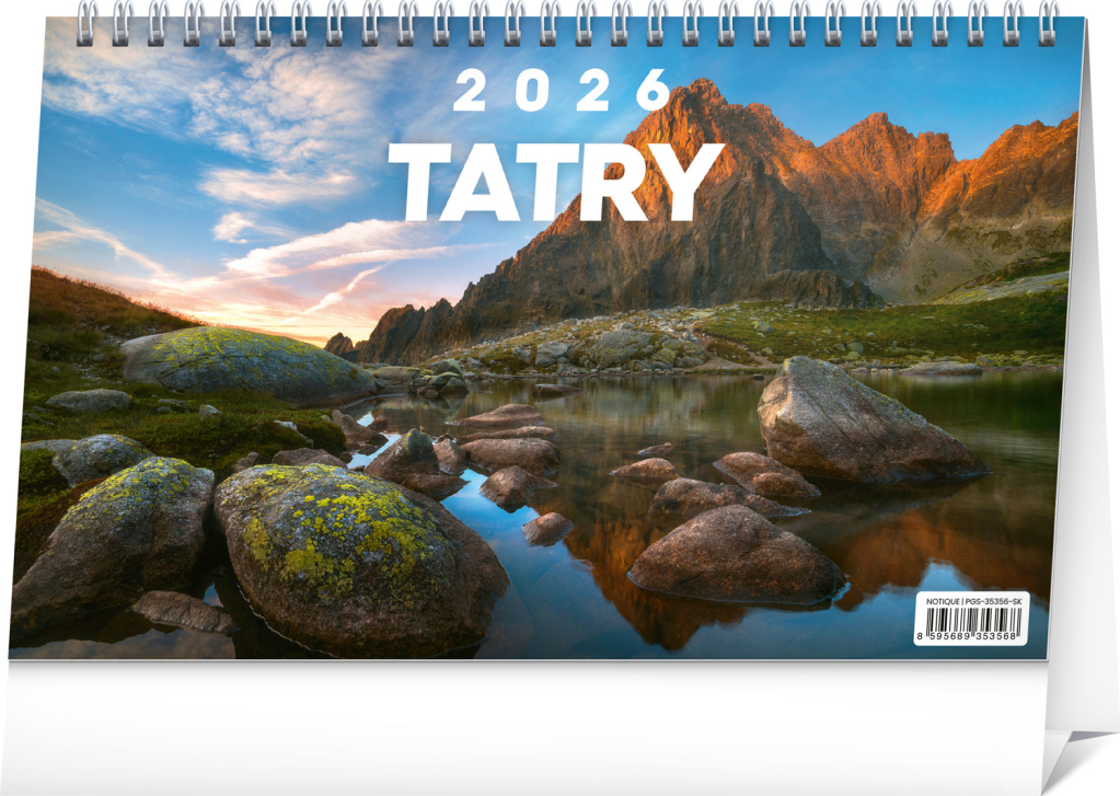 Slovenské hory v 53 snímcích stolního kalendáře s týdenním kalendáriem. Procestujte během roku známá i méně známá místa a zákoutí, která jsou pro vás ukryta v drsné a zároveň krásné tatranské krajině. Fotografie doplňuje slovenské týdenní kalendárium se jmény, svátky a památnými dny.
