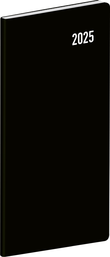 Praktický tenký diář v černé barvě s měsíčním rozložením se vejde opravdu všude. Obsahuje české kalendárium se jmény, svátky a památnými dny, pracovní kalendář, seznam jmen a přehled na rok 2025 a 2026.